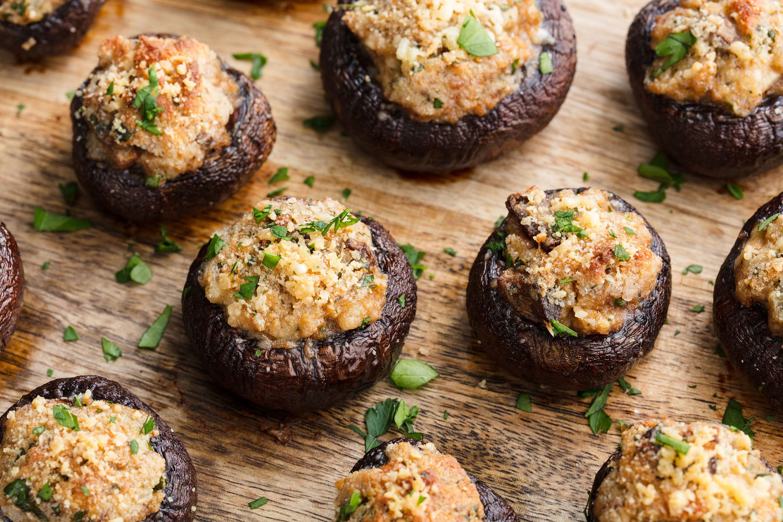 Ingredients: 1 package of button mushrooms 1 white onion Sweet Butter Olive Oil 1 block of Boursin cheese 1/2 cup shredded Parmesan cheese 1/4 cup